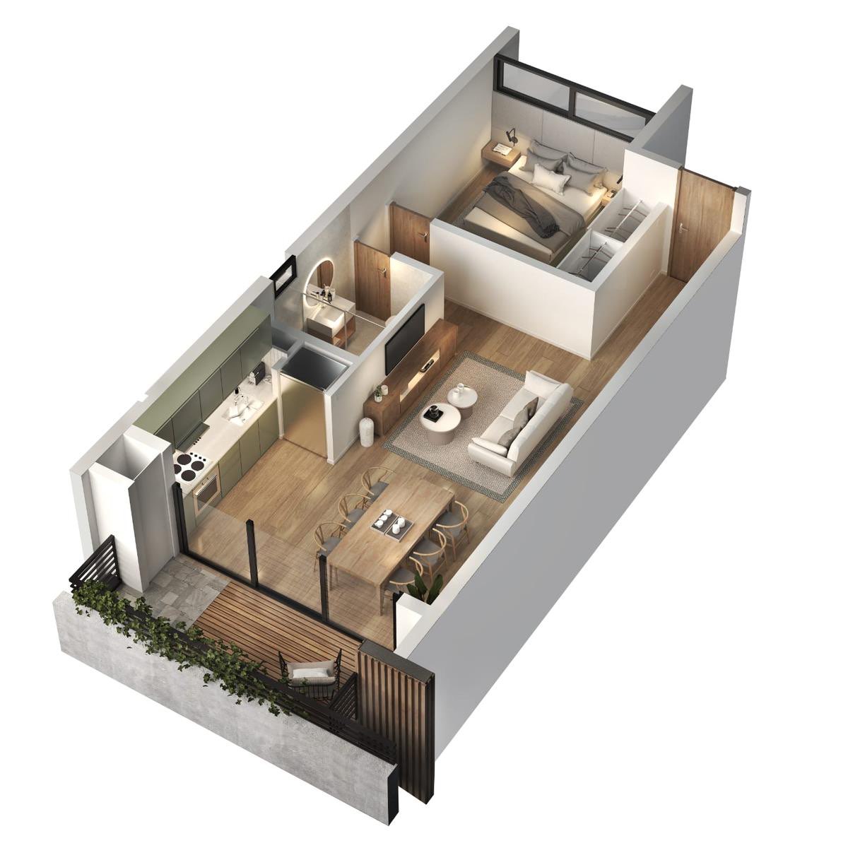Las características del emprendimiento son ideales para satisfacer las necesidades de los futuros propietarios. Con servicios como agua corriente, gas natural, WiFi, cable TV y calefacción, los residentes disfrutarán de un confort inigualable. Además, la infraestructura cuenta con pavimento, desagüe cloacal y alumbrado público, garantizando un entorno seguro y accesible. Cada unidad está diseñada para maximizar el uso del espacio, brindando la posibilidad de disfrutar de un acogedor living-comedor y un balcón privado.